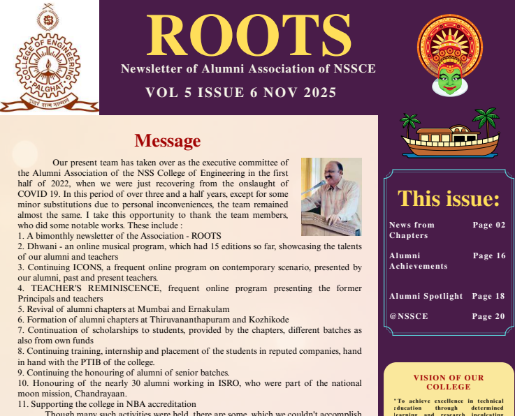 NECAB, Bangalore chapter of NSSCE Alumni Association is organizing their get together celebration "Samaagamam" on April 9th 2023. This year's attraction would be the musical night by renowned Singer Harish Sivaramakrishnan (Agam Fame) and Team, and Drama by our own NECAB Theatre directed by Prakash Bare and V K Prakash.